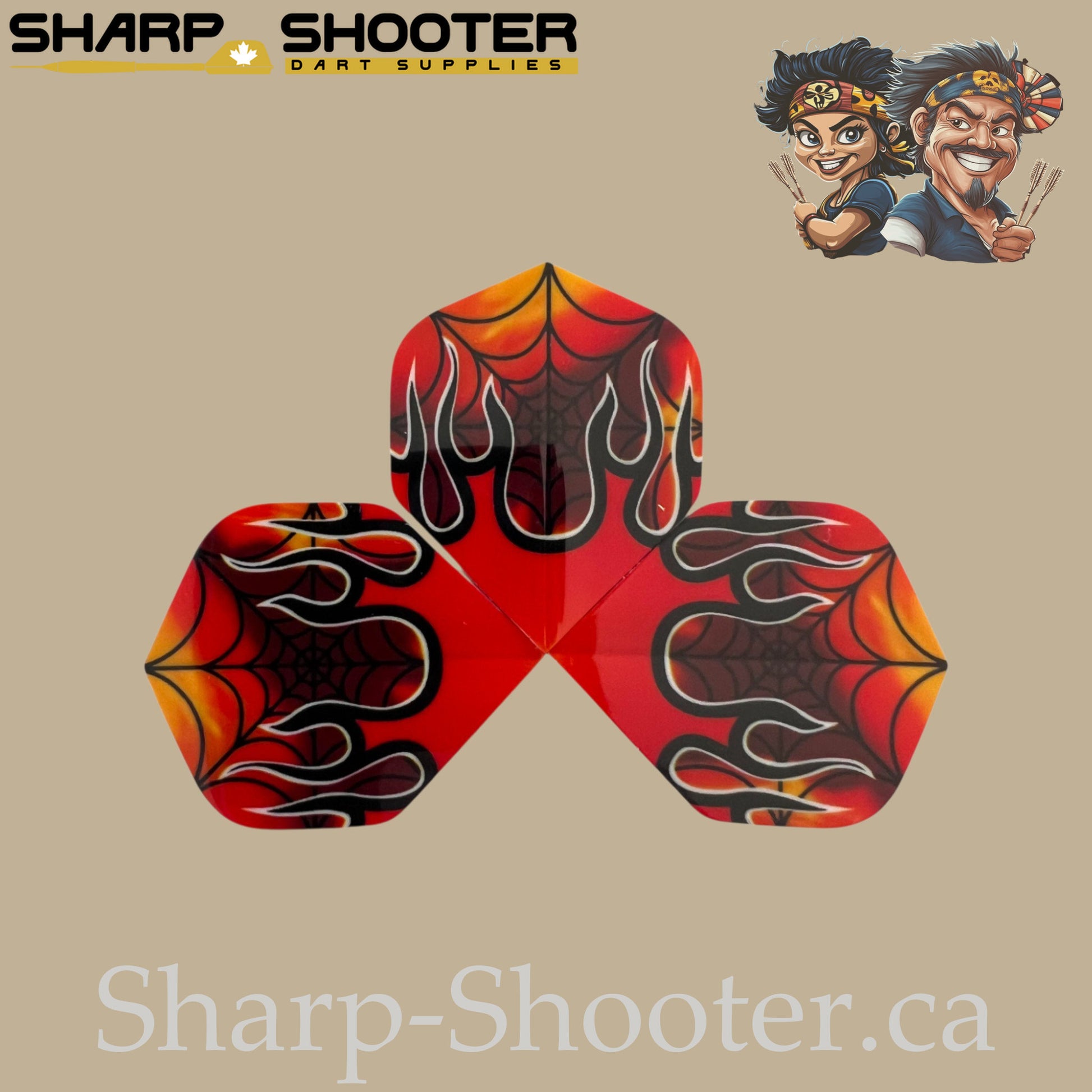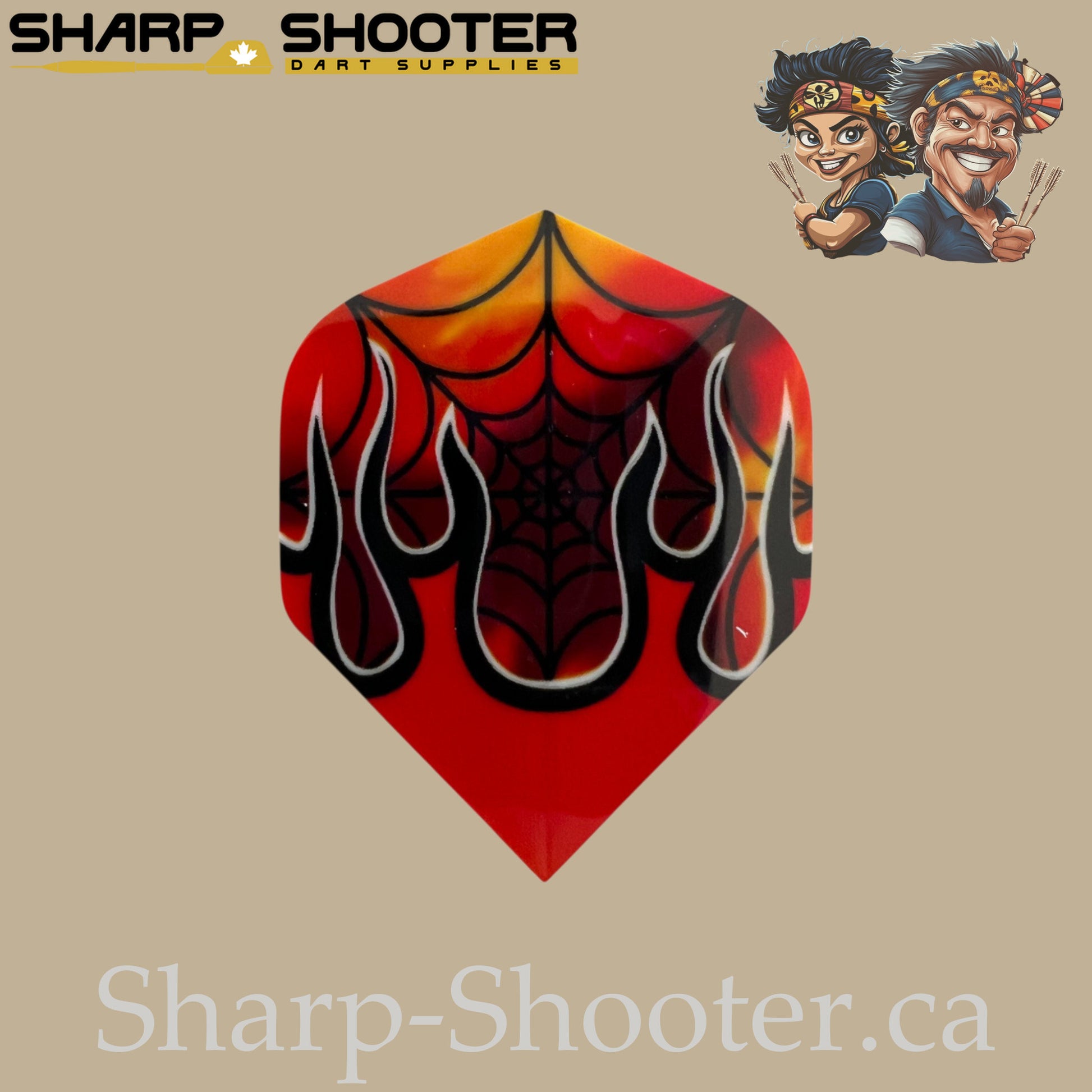The Devil’s Breath scorches the board with fire and fury. With a blazing red-and-orange backdrop wrapped in a dark web design, this flight is pure aggression built into PET toughness.
